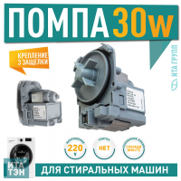 Сливной насос (помпа) для стиральной машины Bosch, Candy, Siemens, Whirlpool, Askoll M50, 30W, 3 защёлки, Р002