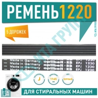 Приводной ремень барабана стиральной машины AEG, Ardo, Electrolux, LG, Whirlpool, Optibelt 1220 J5, J423