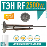 ТЭН 2,5 кВт (2500 Вт) RF для водонагревателя Thermex ISP, IRP, SPR, SPRINT, Garanterm, под анод М6, фланец 92мм, 20942