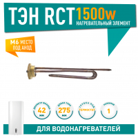 ТЭН 1,5кВт (1500Вт) RCT, резьбовой 42 мм для Ariston, De Luxe, Real, Thermex, под анод М6, 20296